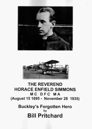 M C   D F C   M A (August 15 1895 -  November 28  1935) Buckley’s Forgotten Hero”. Simmons had a distinguished WWI army career, during which he was wounded three times and was awarded a Military Cross, serving at the Battle of Mametz Wood and the Somme with the Welsh Regiment. He then volunteered for the Royal Flying Corps, which became the Royal Air Force on 1st April 1918, serving in Salonika and Russia where he fought as an observer and pilot with the White Russians against the Bolsheviks. It was there he was awarded three Russian medals for his flying exploits. After the war, he entered the church, first as a curate at West Kirby and then in his home church of St. Matthew’s, Buckley. He was  a prominent figure in the Buckley British Legion, working tirelessly to help ex-servicemen adapt to civilian life. He later became Vicar of All Saints Church, Owston, Yorkshire where he died suddenly in his sleep aged only 40. His wish was that he be buried in his home town of Buckley where he had been happiest. His grave is in St. Matthew’s churchyard.